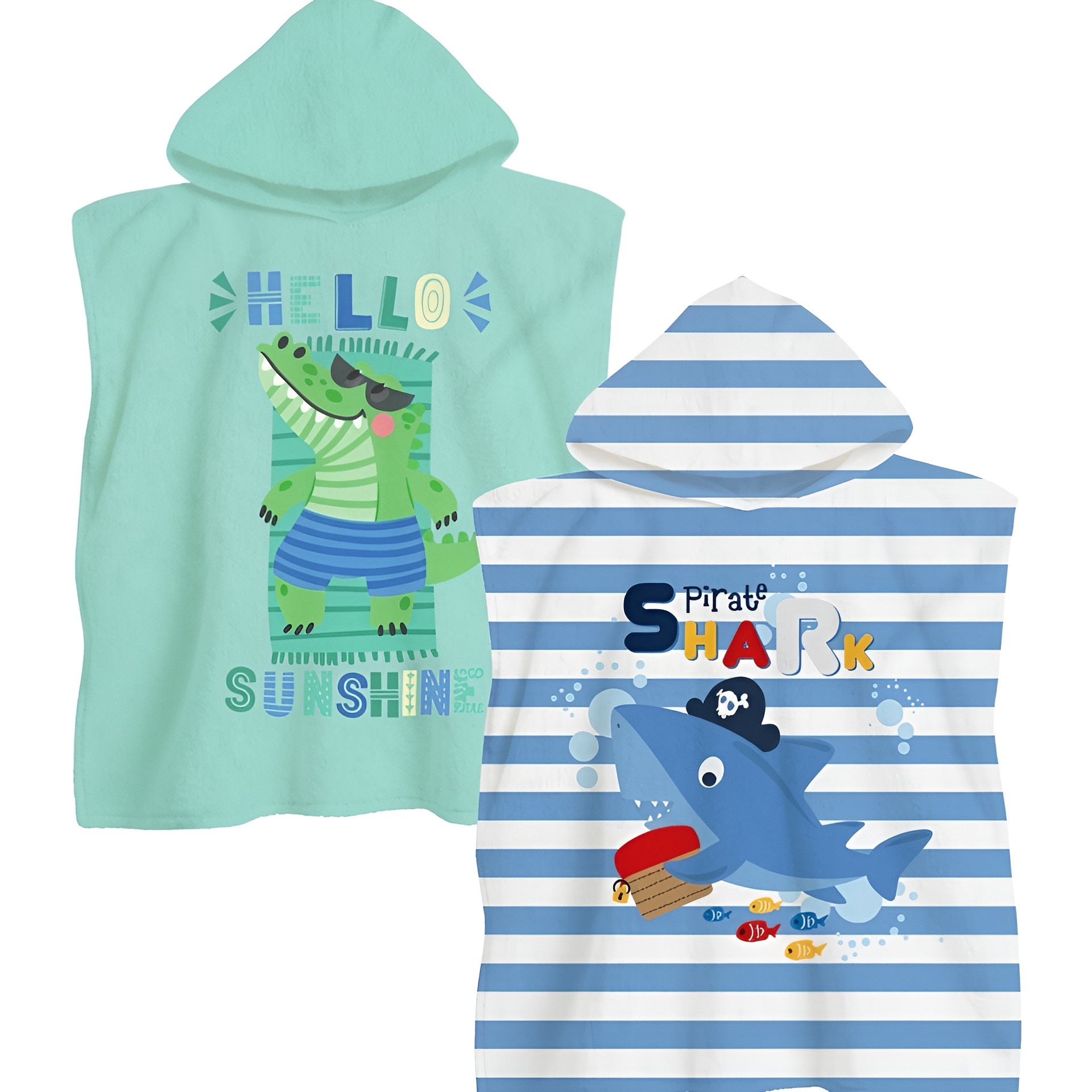 Poncho-serviette dinosaure ou requin à capuche - 1 unité