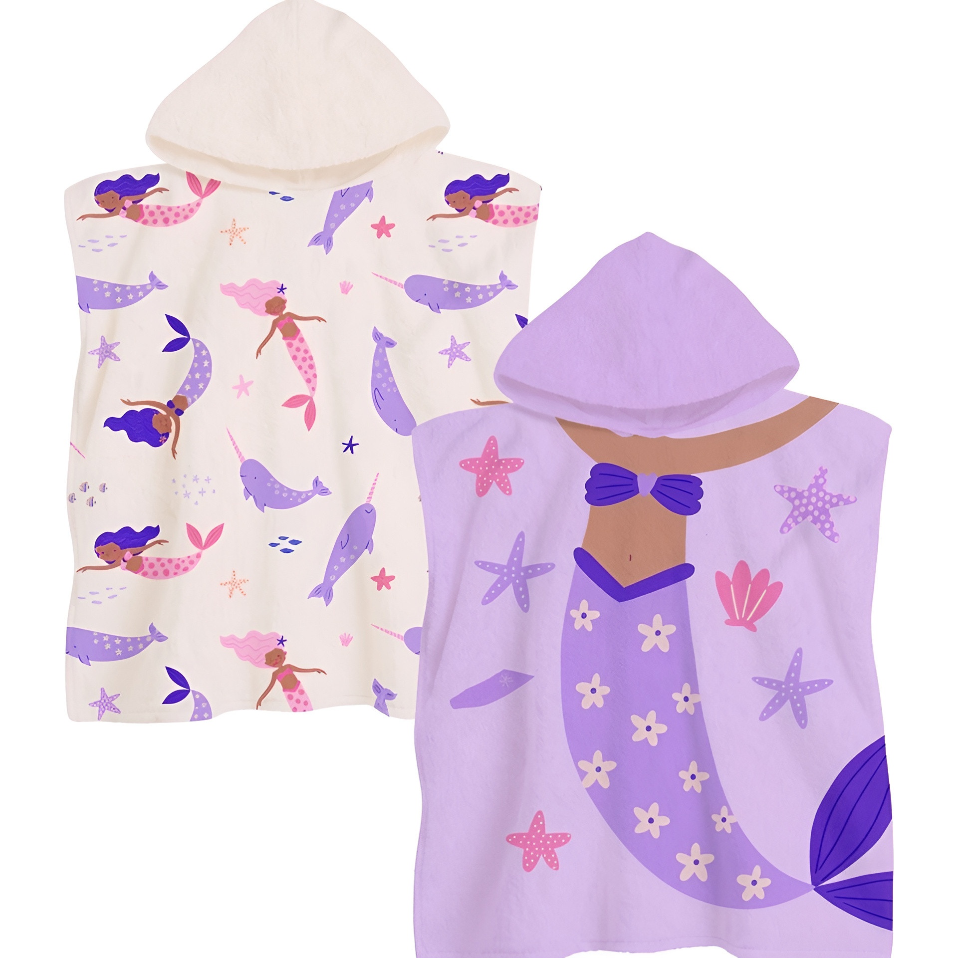 Poncho-serviette sirène avec capuche - 1 unité