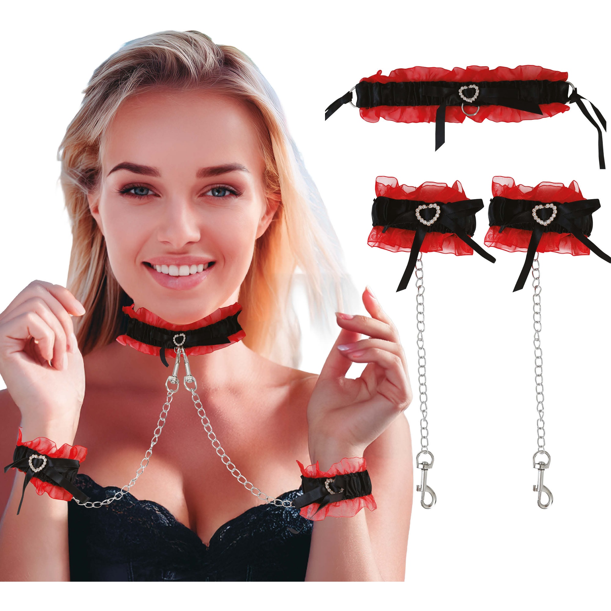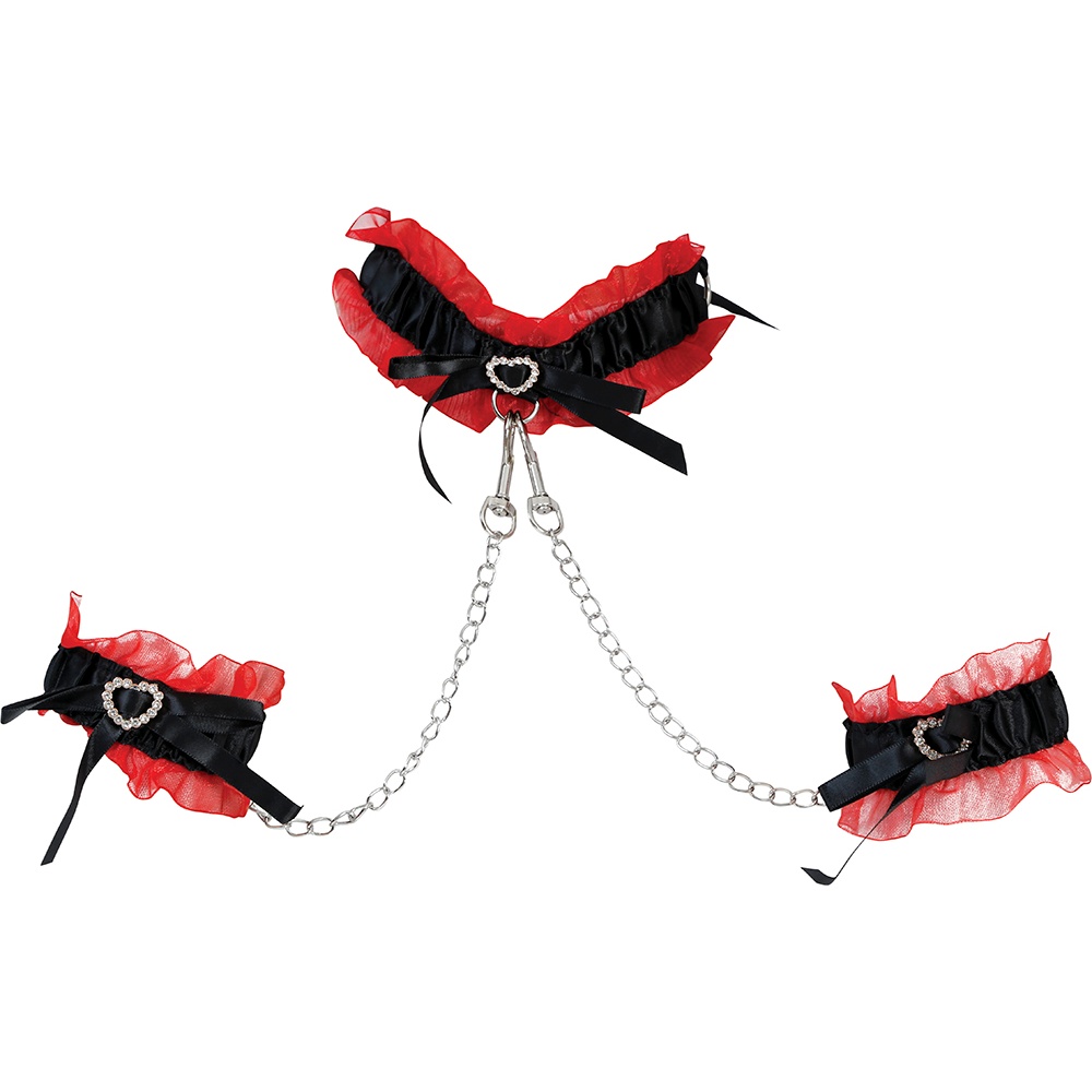 Ensemble sensuel de style burlesque conçu pour sublimer toute tenue audacieuse. L'alliance des volants rouges, des noeuds noirs et des détails métalliques crée un contraste élégant et saisissant. Les chaînes apportent une dimension dramatique et peuvent être retirées selon l'effet souhaité. Ajustable et confortable, il a été pensé pour vos séances photo, vos prestations scéniques ou vos soirées spéciales où vous souhaitez vous démarquer.