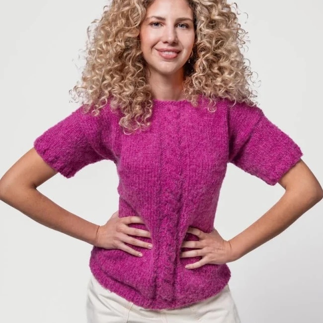 • Pull sans manches avec une tresse centrale. Niveau de difficulté facile.
