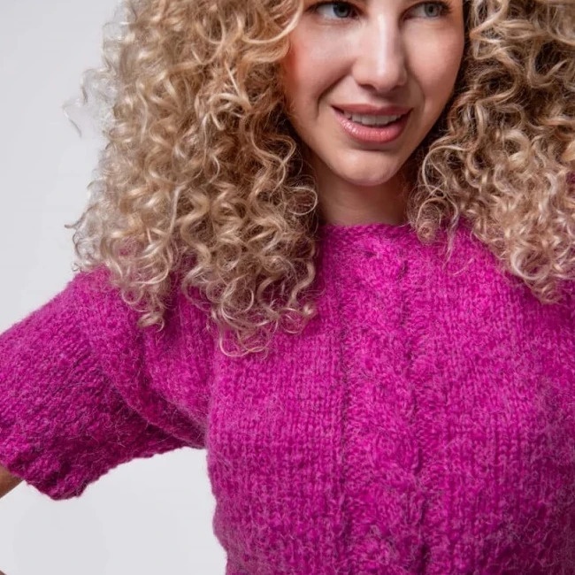 • Il est tricoté en combinant les fils Ankara et Lumina, créant un effet de brillance et des éclats sophistiqués.