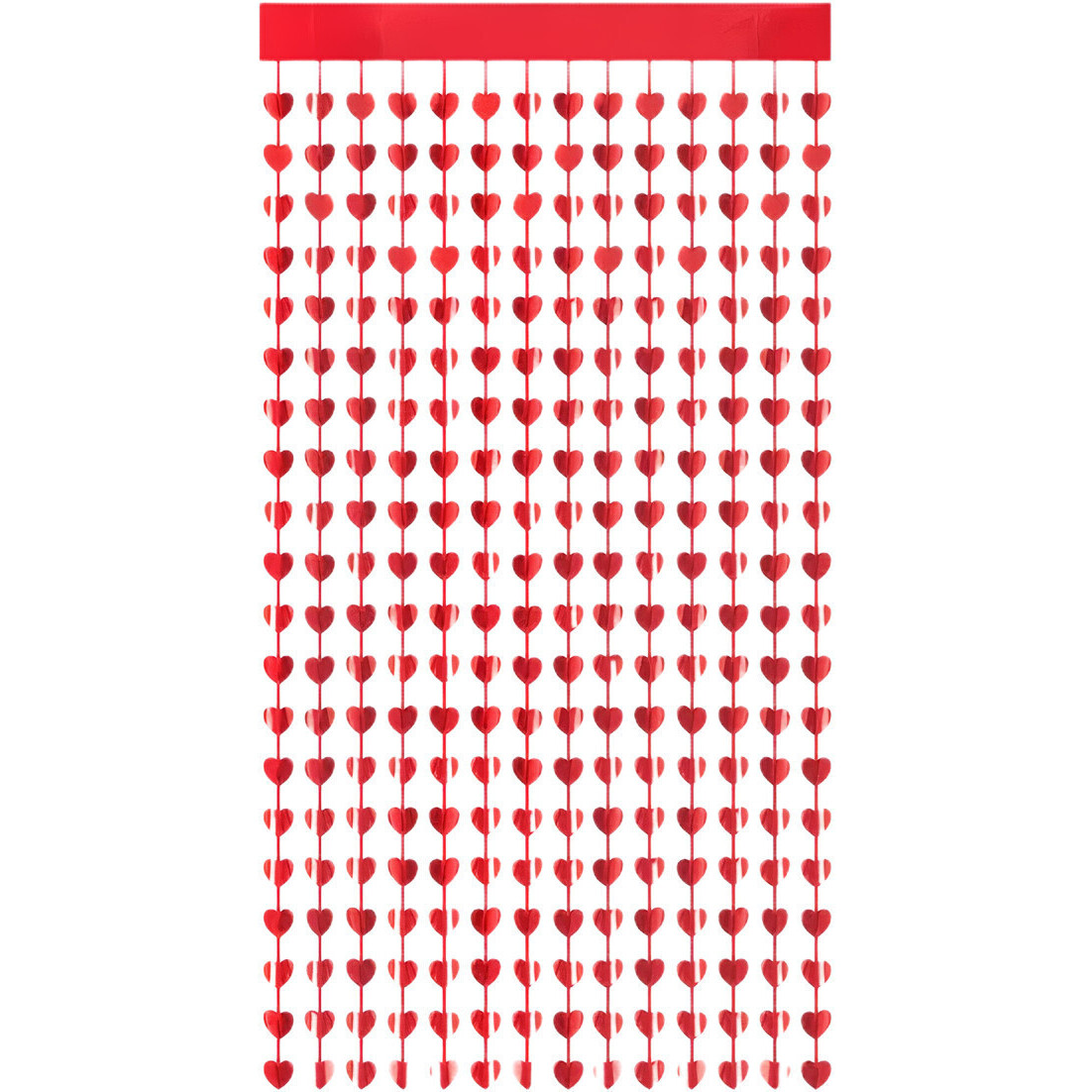 - Rideau en foil rouge orné de petits coeurs, finition métallisée brillante.