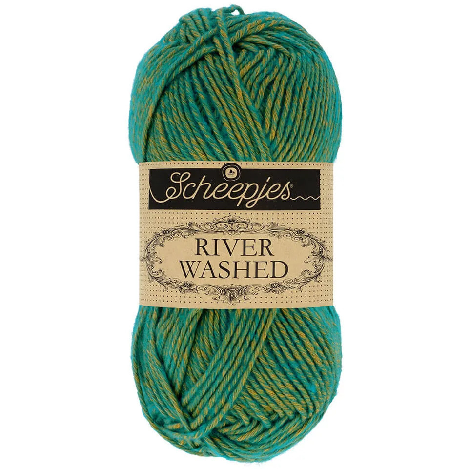 Scheepjes River Washed est un fil de coton et acrylique, de haute qualité et très doux au toucher. Ce fil possède les mêmes caractéristiques que le Stone Washed, bien que ses nuances soient différentes.
