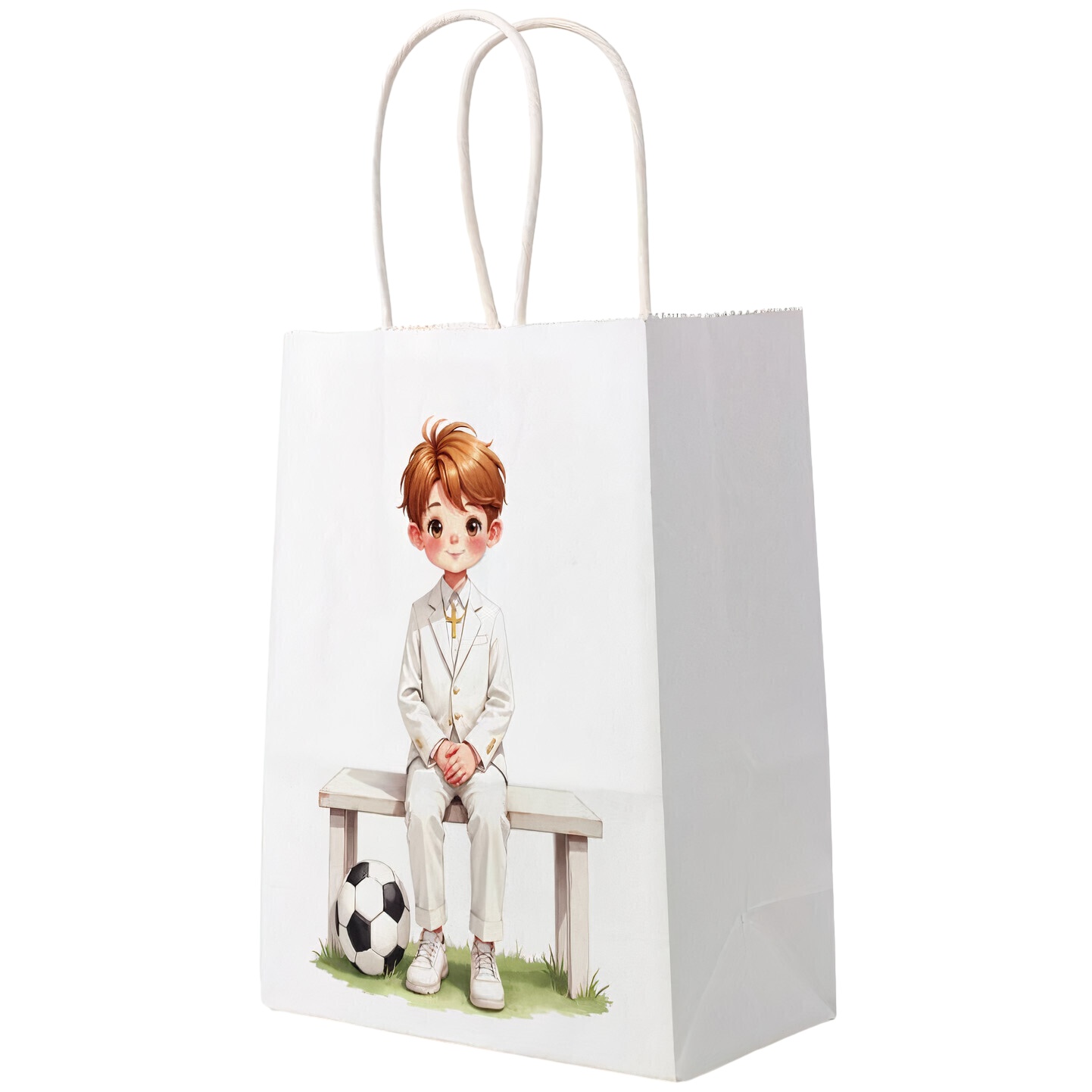 Sac cadeau de communion - garçon en costume avec ballon de football, 23 x 18 x 10 cm