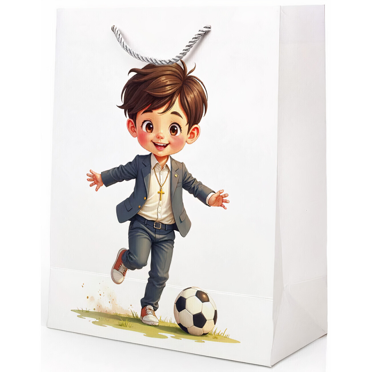 Sac cadeau de communion pour garçon - motif football, 40 x 30 x 12 cm