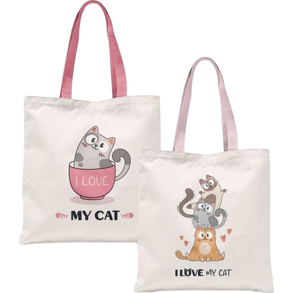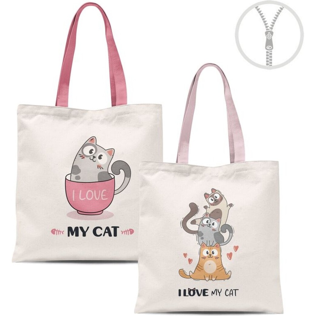 Sac en toile imprimé chats avec fermeture éclair - 1 unité