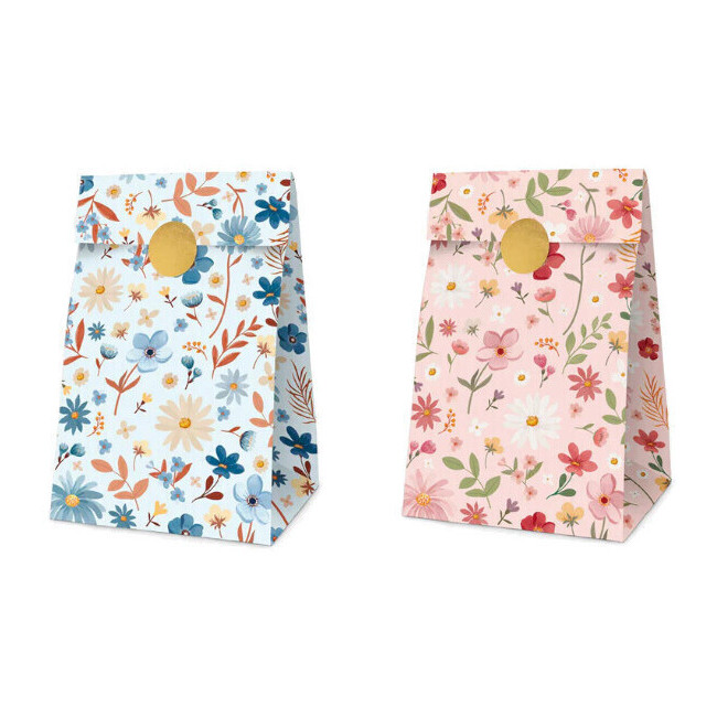 Sac cadeau floral en papier de 20,5 x 11,5 x 7,5 cm - 4 unités