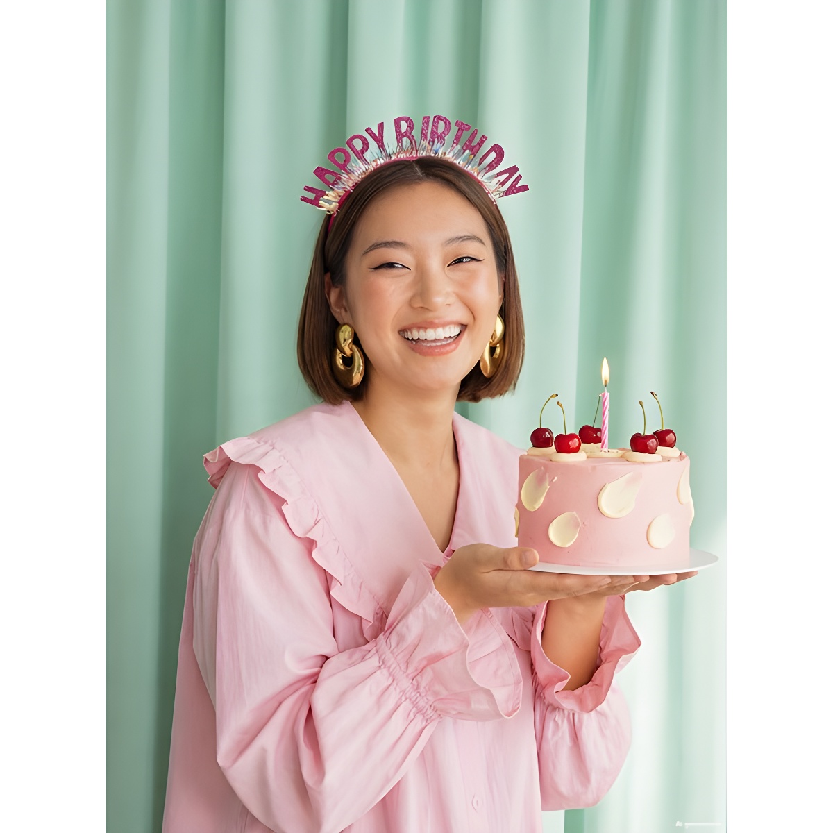 • Lettres 'Happy Birthday' en paillettes roses apportant une touche brillante et remarquée.
