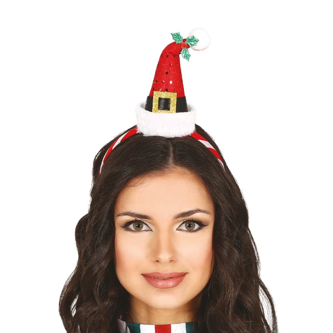 Serre-tête avec mini chapeau de Mère Noël et gui