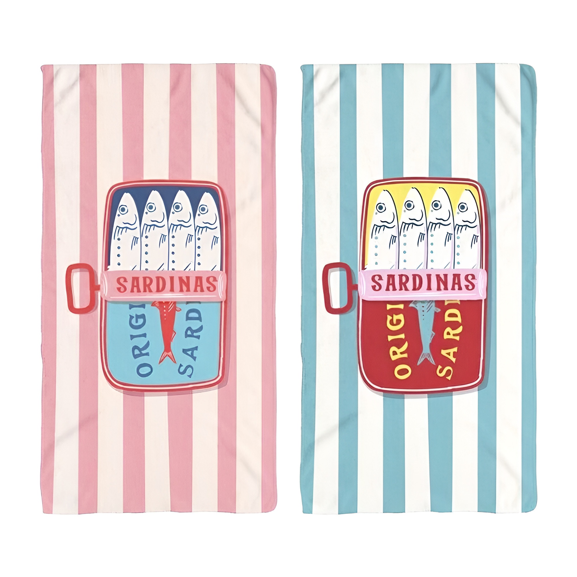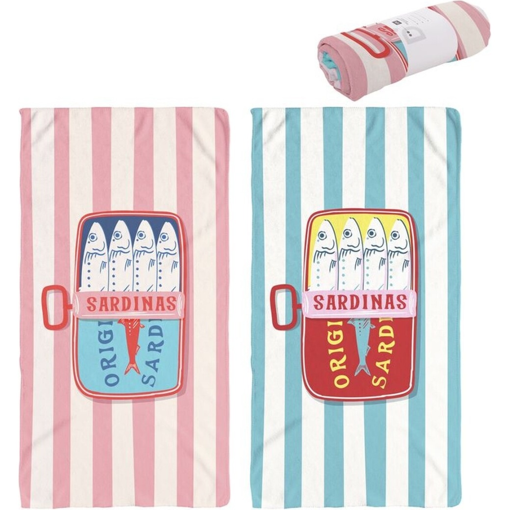 Serviette de plage 170 x 90 cm motif boîte de sardines - 1 unité