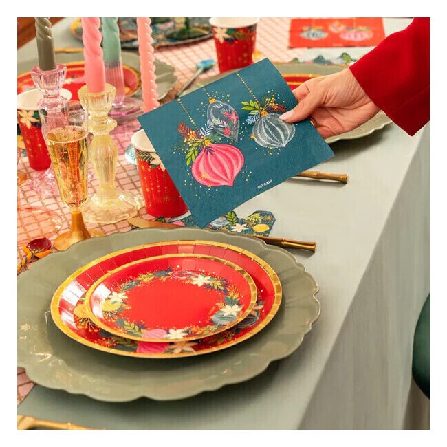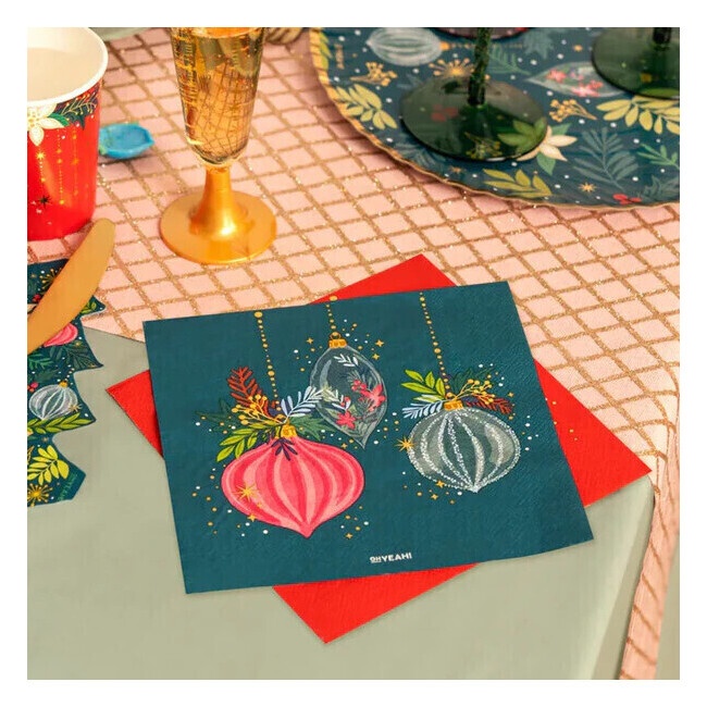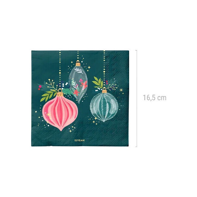 Serviettes de 16,5 cm avec décoration de Noël verte - 30 unités