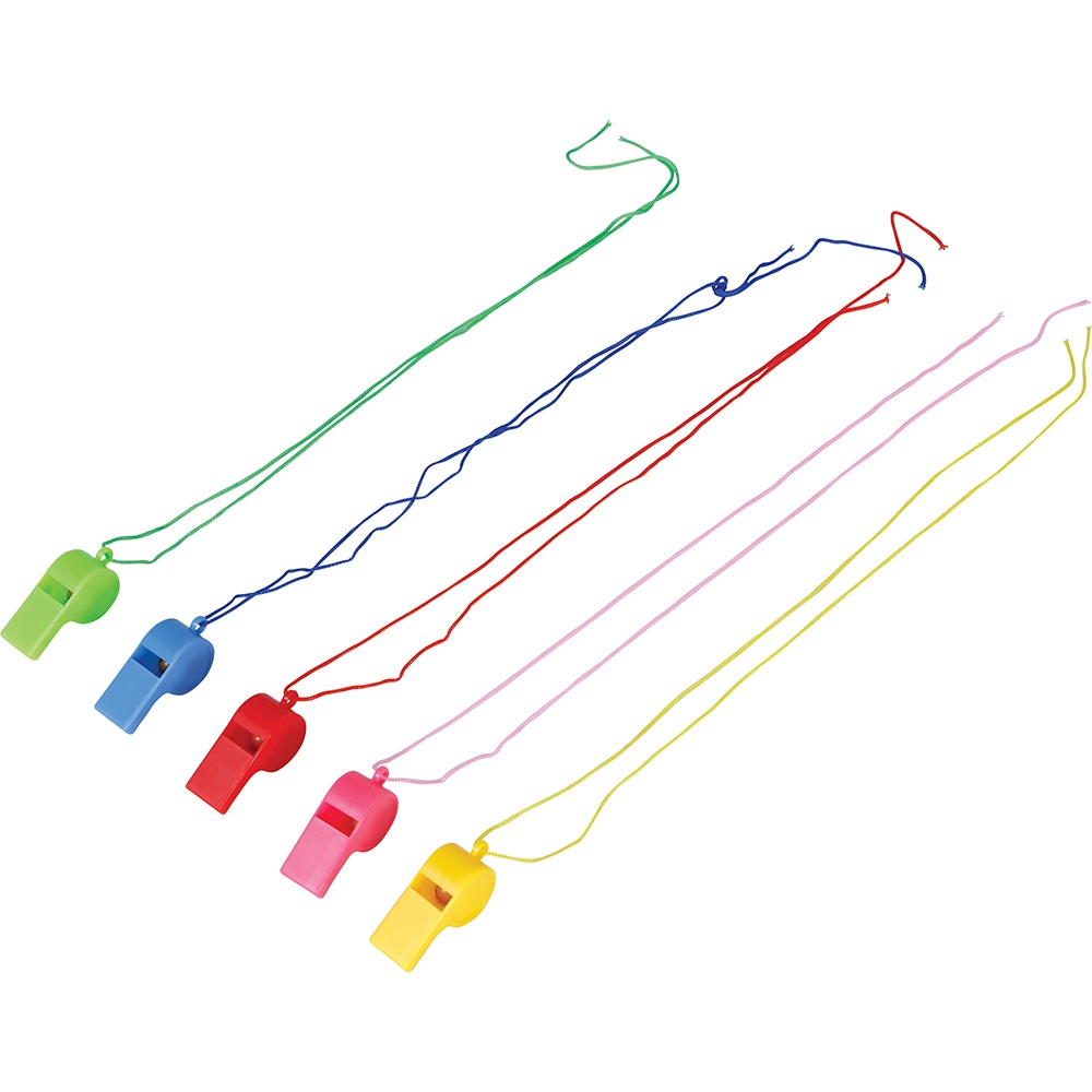Sifflets colorés avec cordon - lot de 4