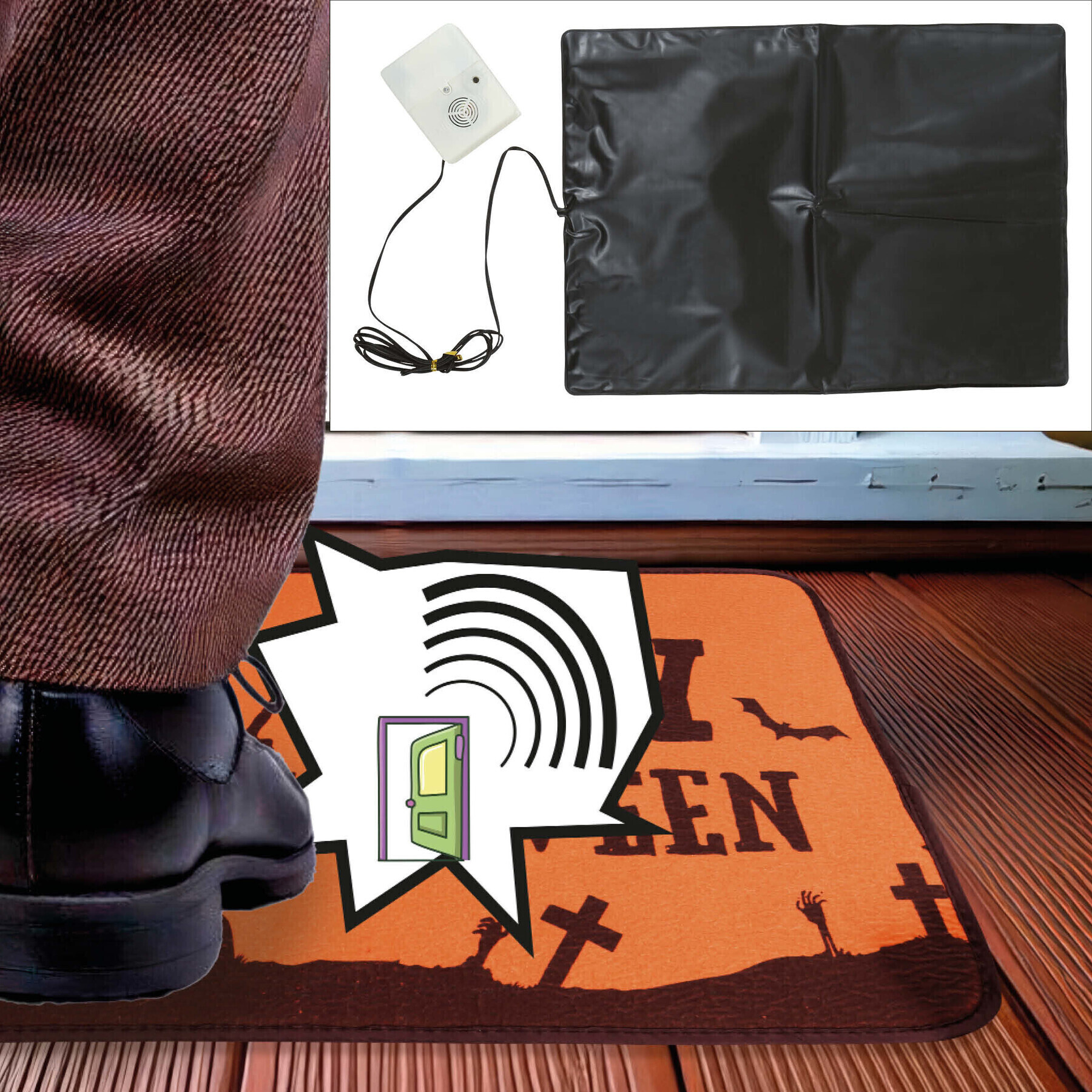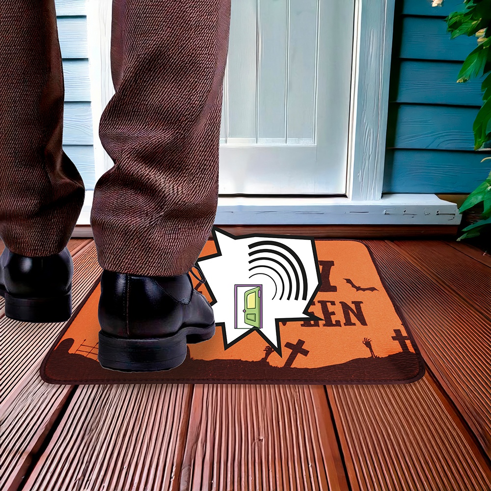 • Se place sous le paillasson avec un capteur qui, lorsque vous le piétinez, reproduit un son d'Halloween.