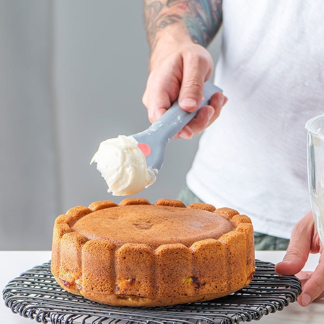 Spatule en plastique avec bords flexibles en silicone, idéale pour amalgamer et mélanger toutes sortes de pâtes.