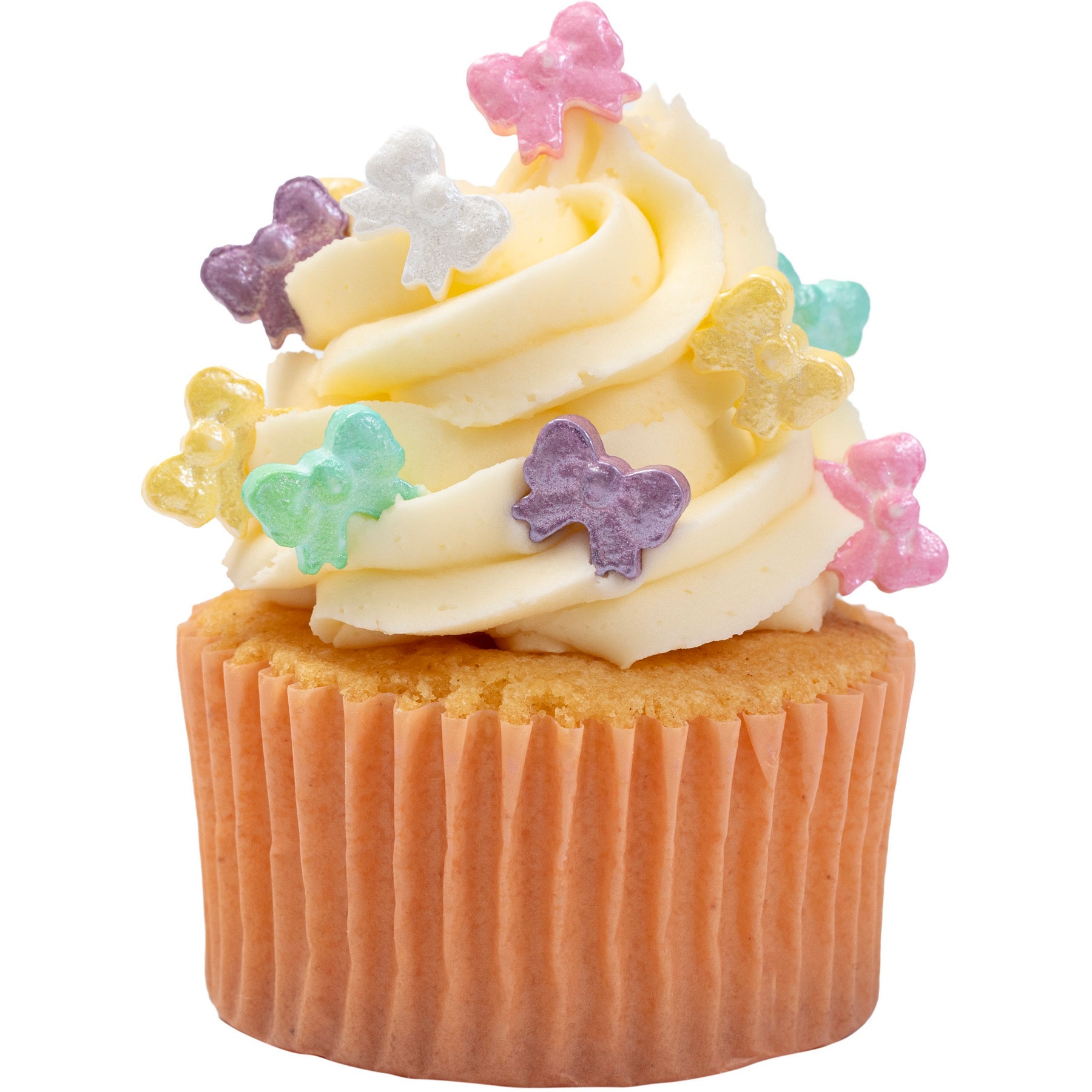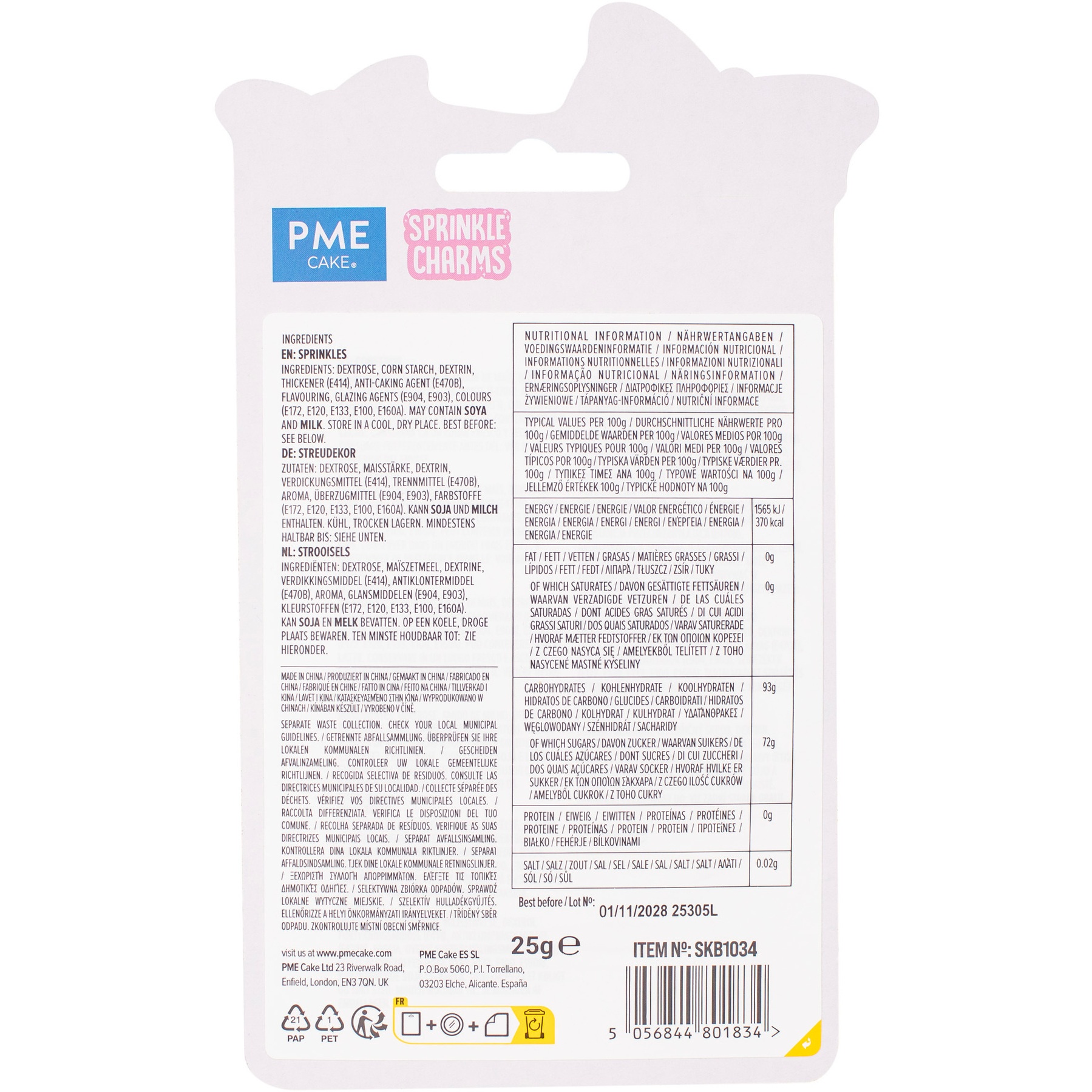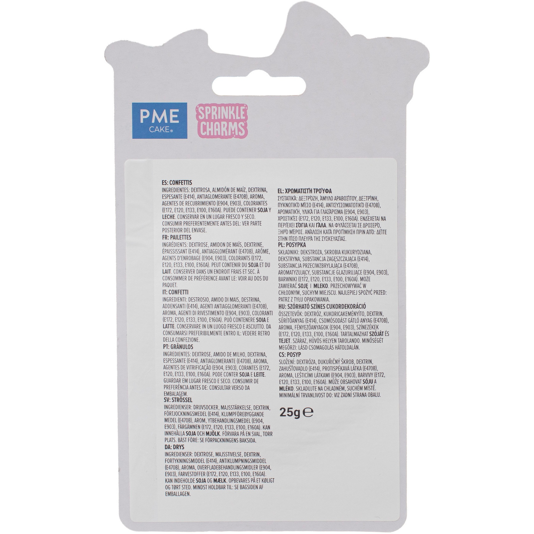 Ingrédients: dextrose, amidon de maïs, dextrine, épaississant (E414), anti-agglomérant (E470B), arôme, agents d'enrobage (E904, E903), colorants (E172, E120, E133, E100, E160A).