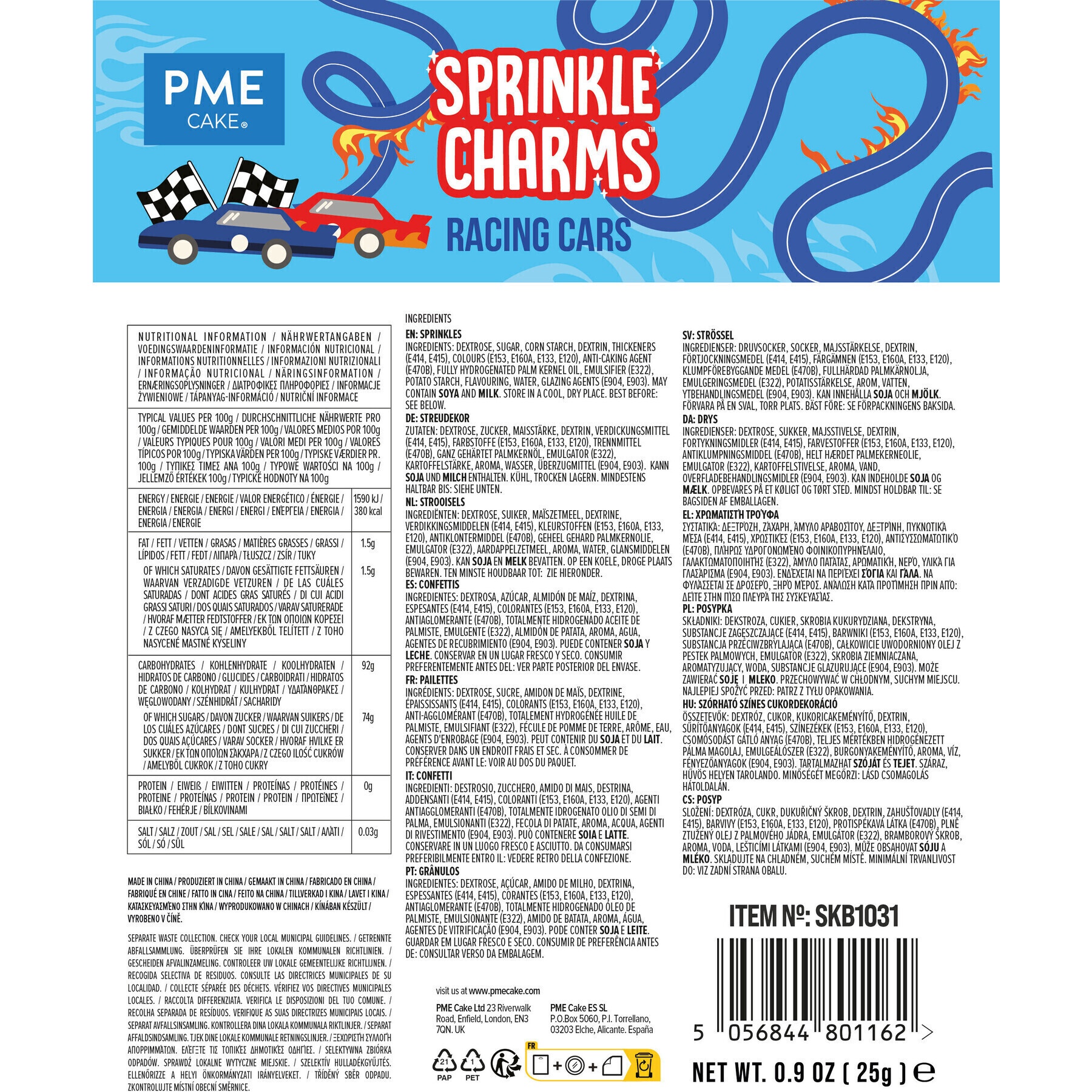 Ingrédients: dextrose, sucre, amidon de maïs, dextrine, épaississants (E414, E415), colorants (E153, E160A, E133, E120), anti-agglomérant (E470B), huile de palmiste totalement hydrogénée, émulsifiant (E322), amidon de pomme de terre, arôme, eau, agents d'enrobage (E904, E903).