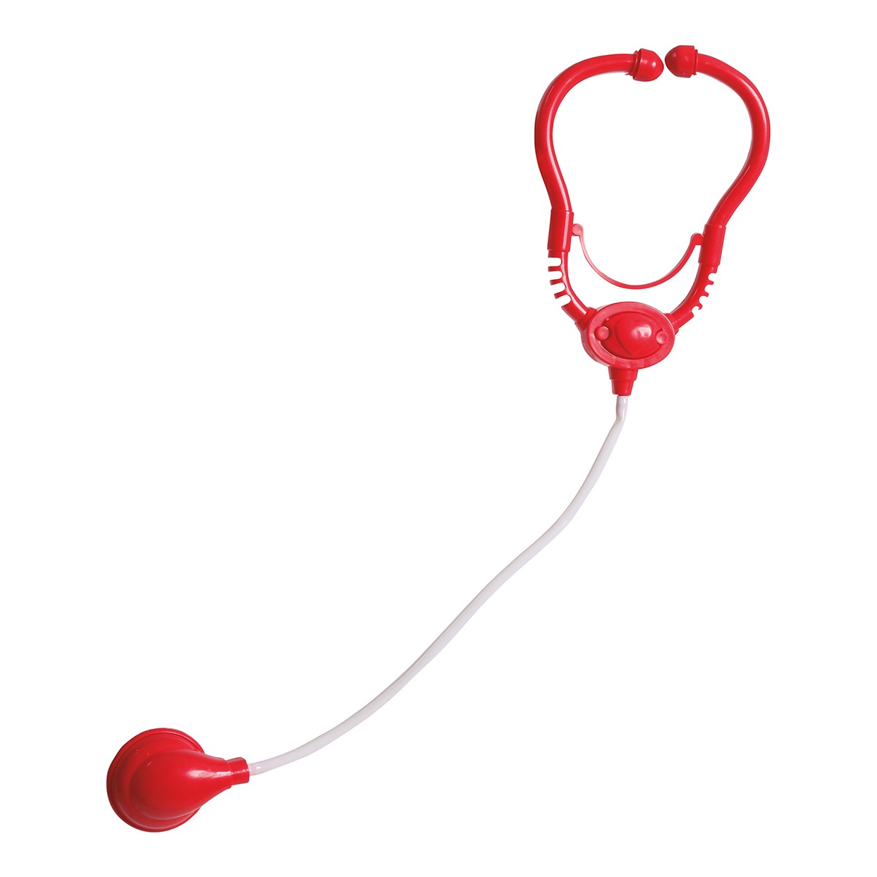 Ce stéthoscope en plastique se distingue par son design en couleurs blanc et rouge, avec divers détails qui rehausseront l’apparence de votre déguisement.