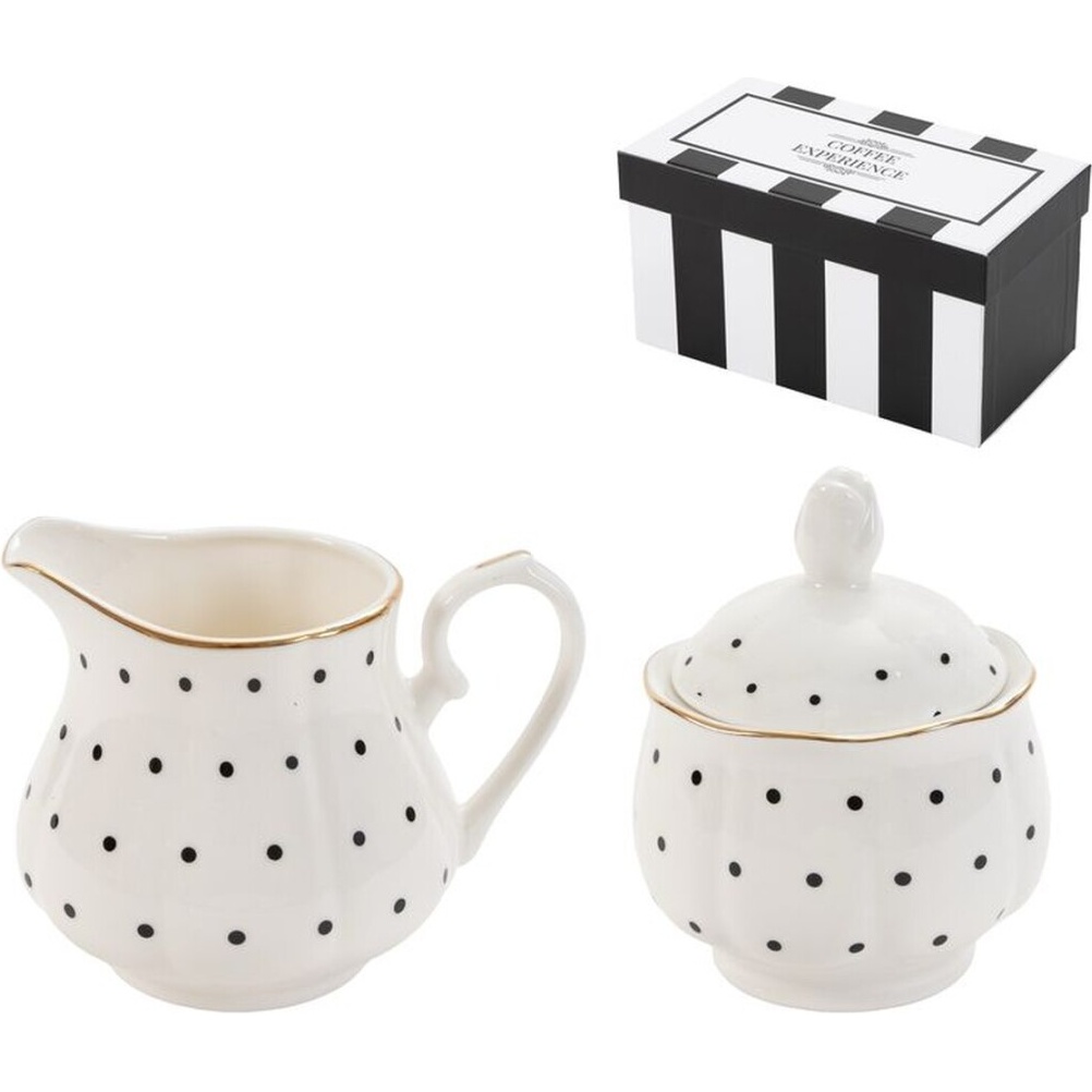 Ensemble sophistiqué qui apporte une note raffinée à votre table. Le décor blanc à pois noirs et le filet doré confèrent un contraste classique et élégant.