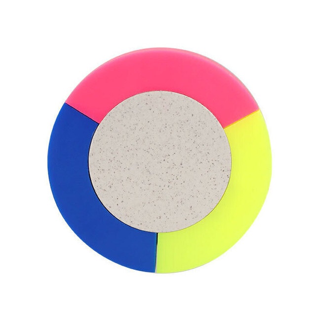 • Surligneur fluorescent original de trois couleurs fabriqué en canne de blé. Avec un corps circulaire à la finition mate douce, spécialement conçu pour un marquage en couleur intégrale.