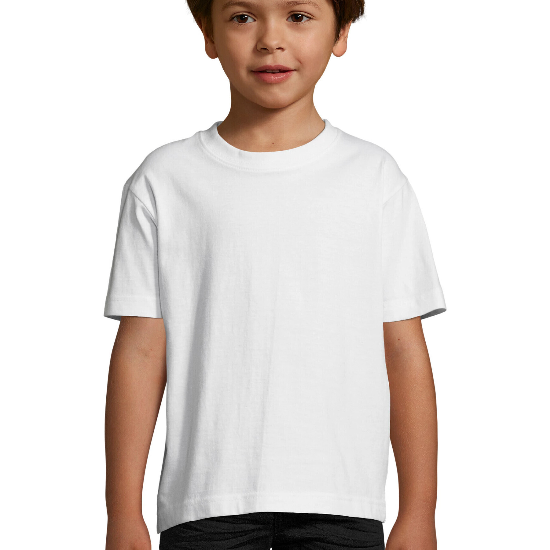 • Style: bande de propreté renforcée au col, col en côte, manches courtes ; coupe avec coutures latérales (2-6 ans) ou tubulaire (dès 8 ans).