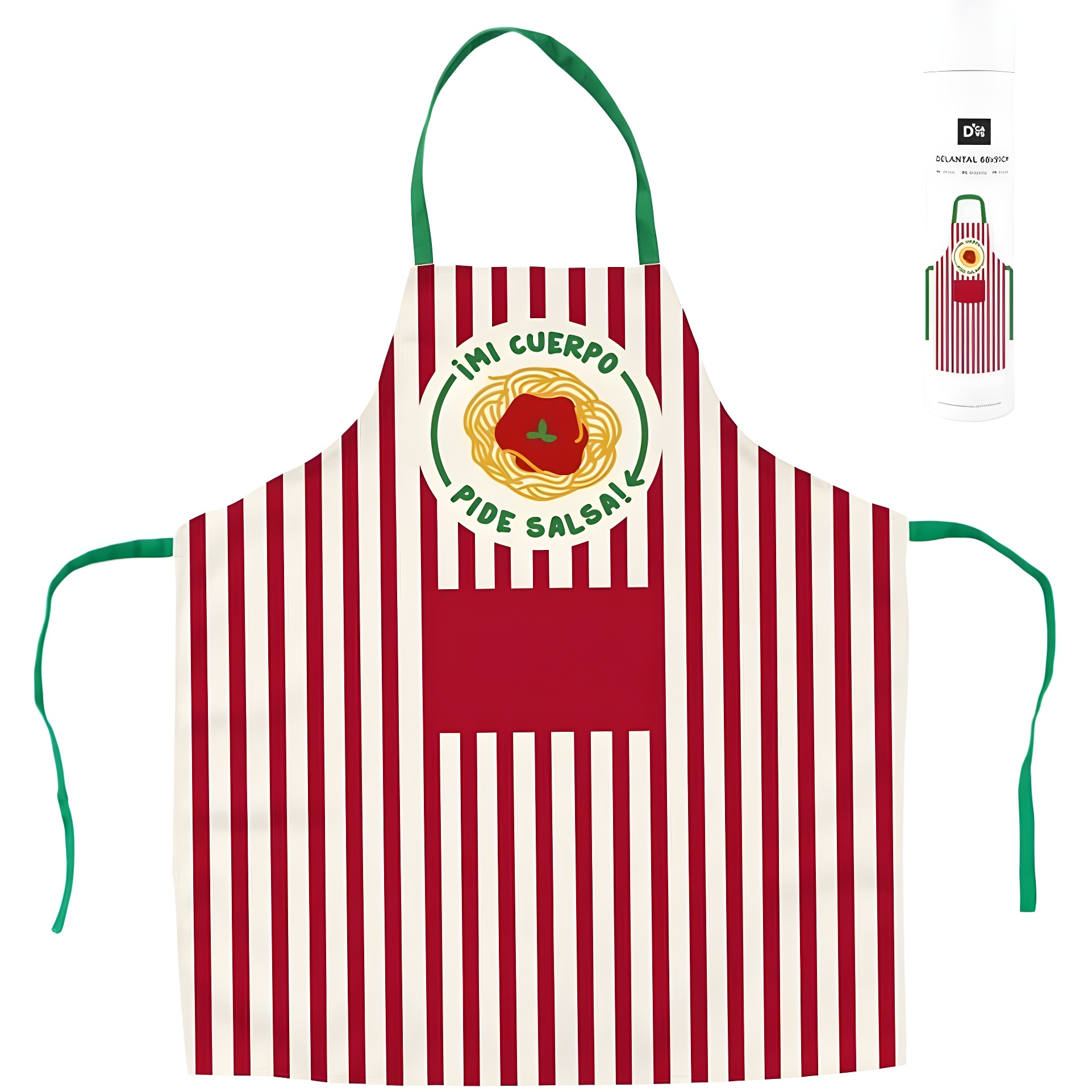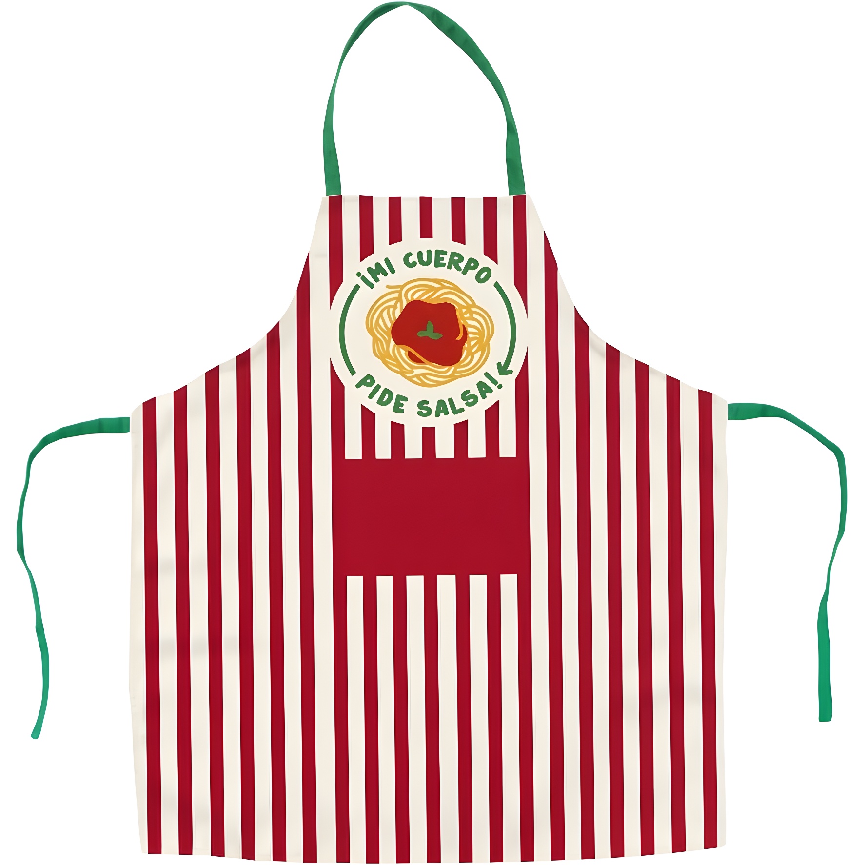 Tablier enfant au motif amusant « ¡Mi cuerpo pide salsa! », pensé pour les petits chefs de 4 à 8 ans. Son design à rayures et le détail de pâte apportent une touche joyeuse et originale pour cuisiner ou réaliser des activités manuelles.