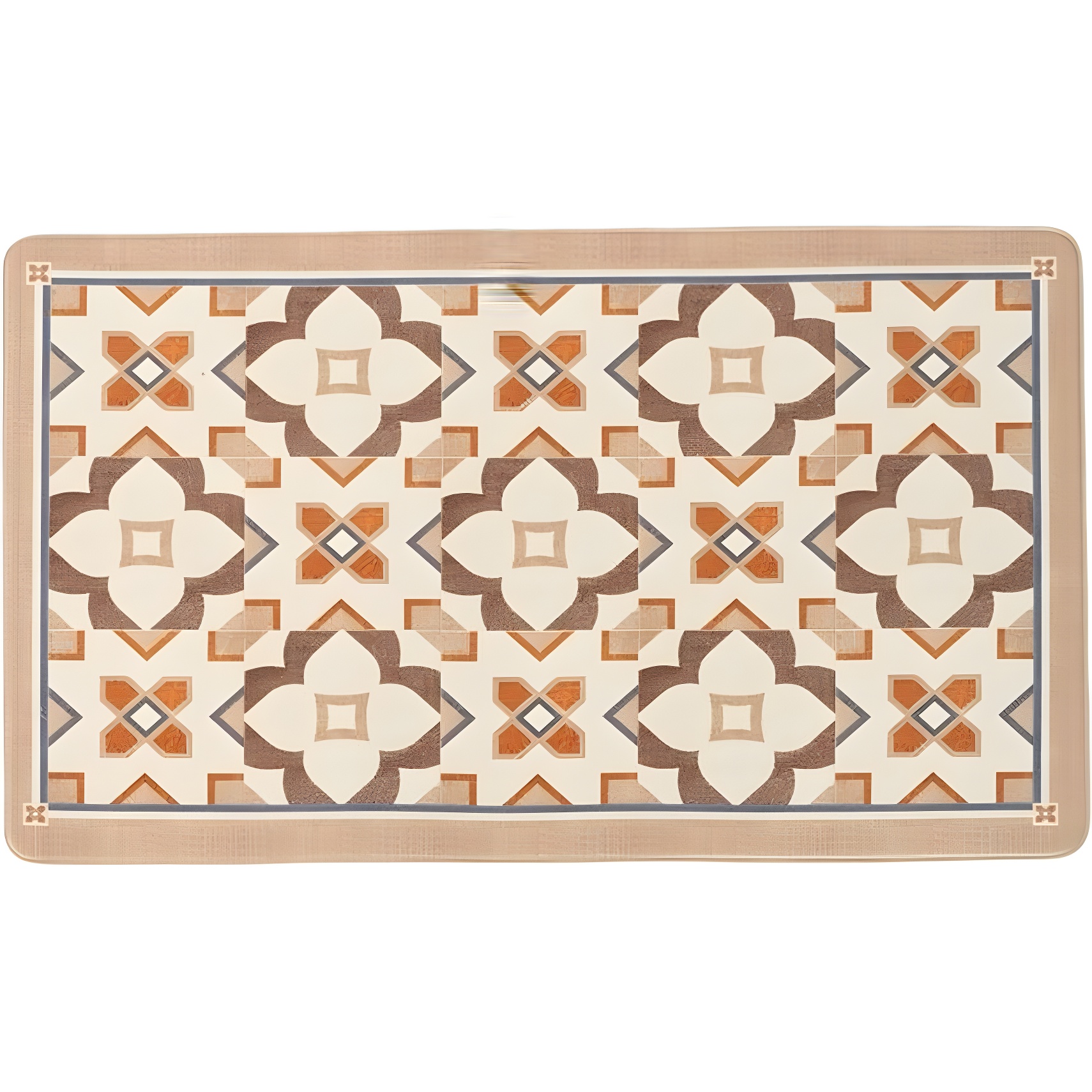 Tapis de cuisine 75 x 45 cm - motif carreaux hydrauliques, marron