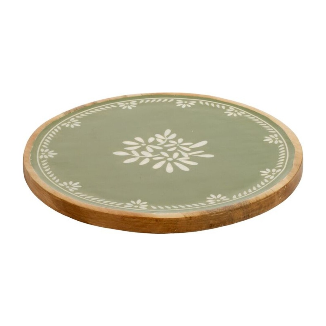 Vide-poche décoratif en ton vert olive, orné d'un délicat motif floral qui allie fonctionnalité et charme rustique.